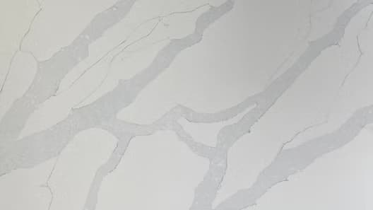 a stunning white quartz?with thick greyish blue veins running through it.?Its unique pattern and neutral color palette make?it a timeless classic